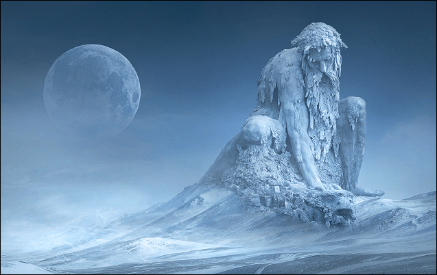 A few days ago, this had been a chunk of ice in the middle of the prison yard. Now, it was a blue-white masterpiece. Each hair in the head and beard had been painstakingly carved. Each scale on the serpent shone and glinted in the sunlight.