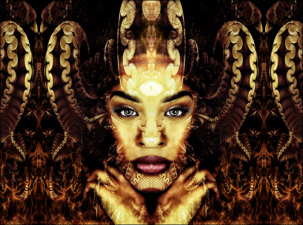 The ancient wall stood like new, the intricate design’s paint still vibrant and without wear. We approached with caution, shined our lights over its beautiful design. I placed my palm against the golden canvas, found it hot to the touch. Something thrived there, old yet youthful. Its vigor resonated within the stone behind the artful and mysterious depiction.
