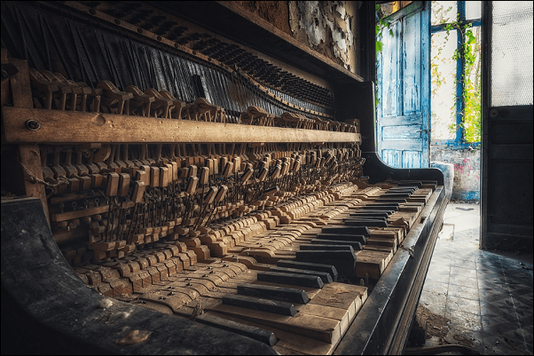 Alone with the ruins of the piano I stroke one