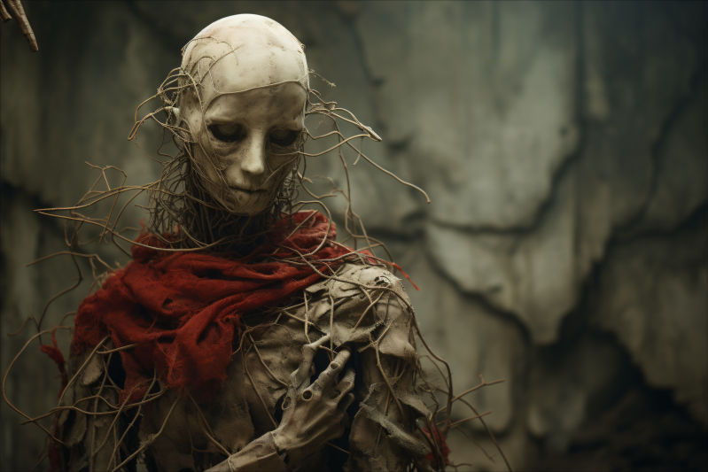 I could no longer hear Susie’s scream, but I saw her. The ancient Woodsman of the forest had peeled off her face. No eyes could look upon us from the monster’s shoulder. Hers wasn’t the only one. Many others, turned leather over time, cloaked the Woodsman’s body in a patchwork of screams and skin.